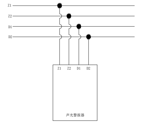 警报器信号总线、电源总线的接线方式示意图如图所示。